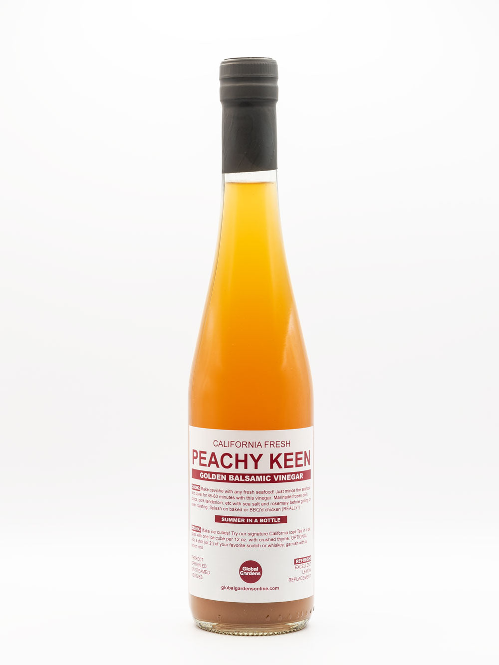 You said peach is your favorite fruit? Well, this “summer in a bottle” is our latest phenom in the Golden Balsamic category. Tangy Chardonnay balsamic aged in oak for a year, then infused with the best peaches in CA. Use our vinegars any time you’d use lemon or limes—steamed veggies and seafood come to mind, sure! But you’ll get even more creative when you read the recipes on the labels and create your own peachy dishes too!